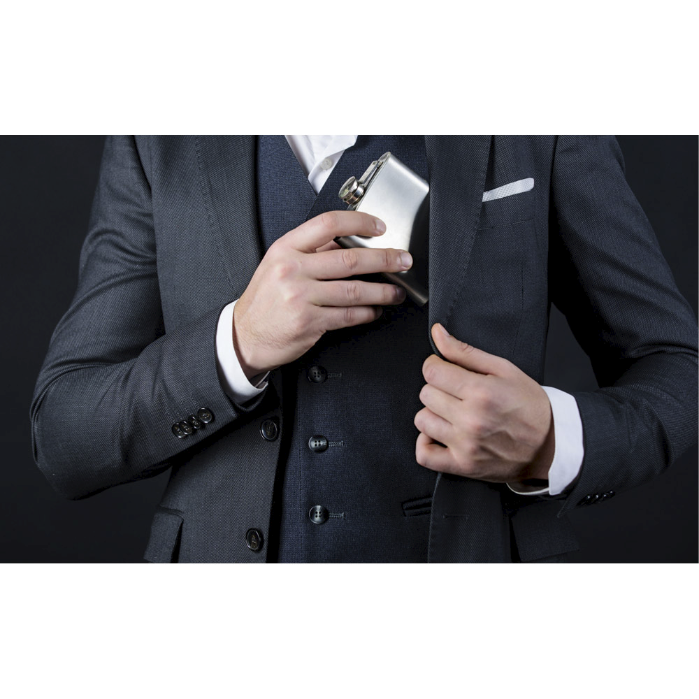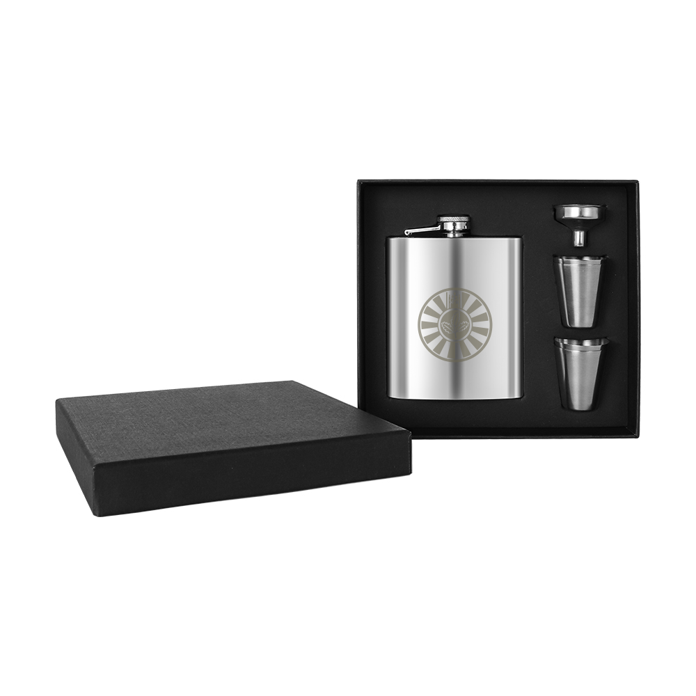 Schöner Flachmann aus Edelstahl (200 ml) inkl. Lasergravierter RT-Rotunde.